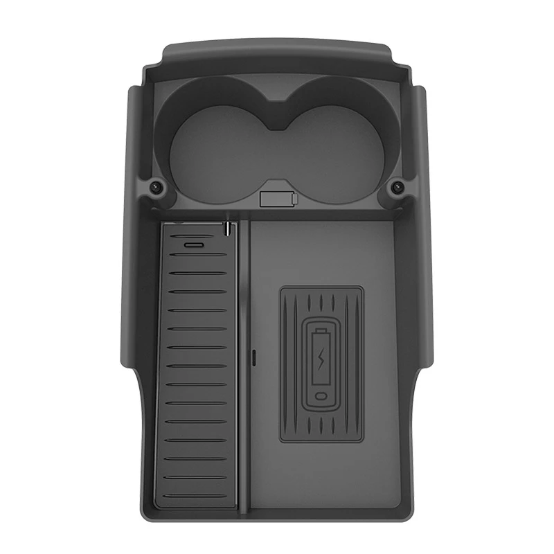 HIGH QUALITY Wireless Qi Phone Charger Organizer Box with Cup Holder and Type-C Cable Center Console Storage Tra